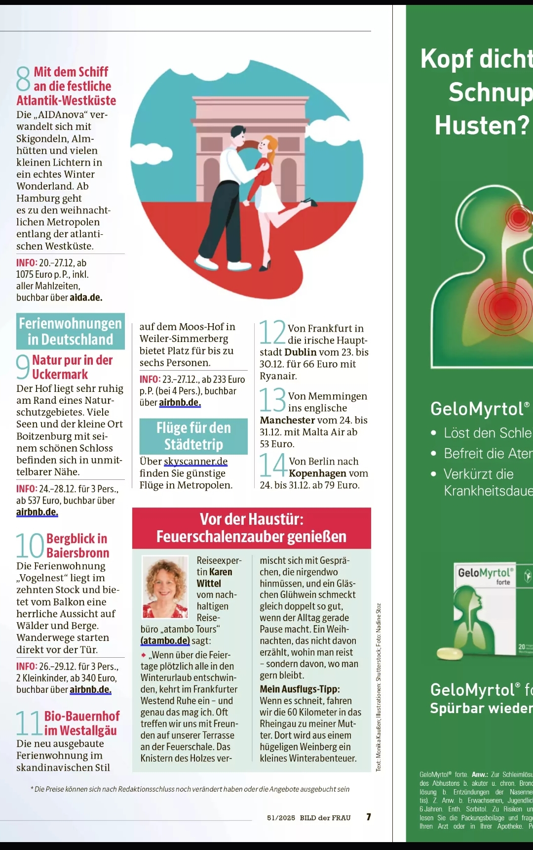 Ich stehe gerne für Interviews in den Medienformaten Print, Online, TV und Podcast zur Verfügung und teile meine Erfahrungen zum nachhaltigen und verantwortungsbewusstem Reisen.